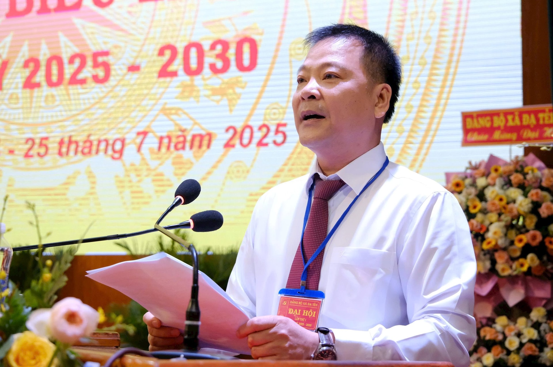 “Ban Chấp hành Đảng bộ xã Đạ Tẻh nhiệm kỳ 2025 - 2030 gồm 23 đồng chí, Ban Thường vụ Đảng ủy gồm 8 đồng chí. Đồng chí Tống Giang Nam được chỉ định giữ chức vụ Bí thư Đảng ủy, 2 Phó Bí thư Đảng ủy được chỉ định gồm: Đồng chí Trần Thế Hoàng và đồng chí Nguyễn Hoàng Minh”.
