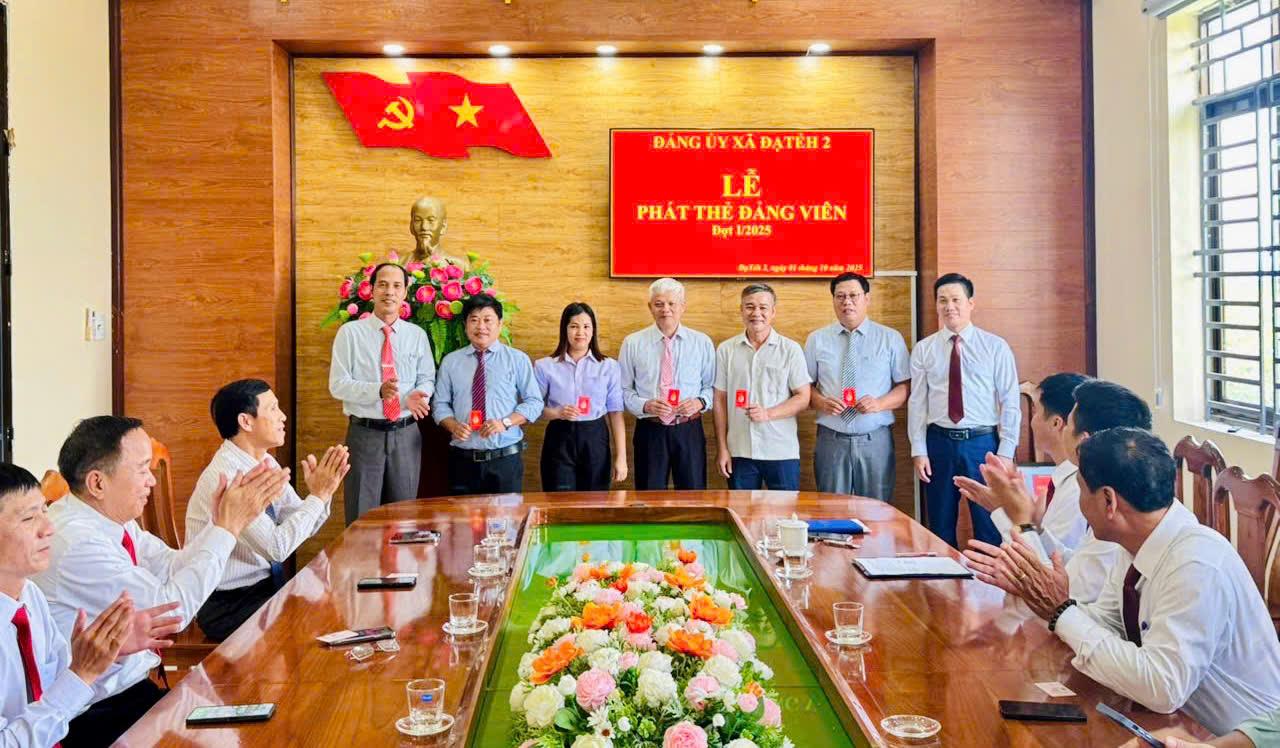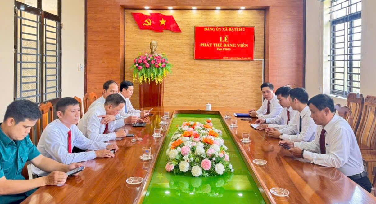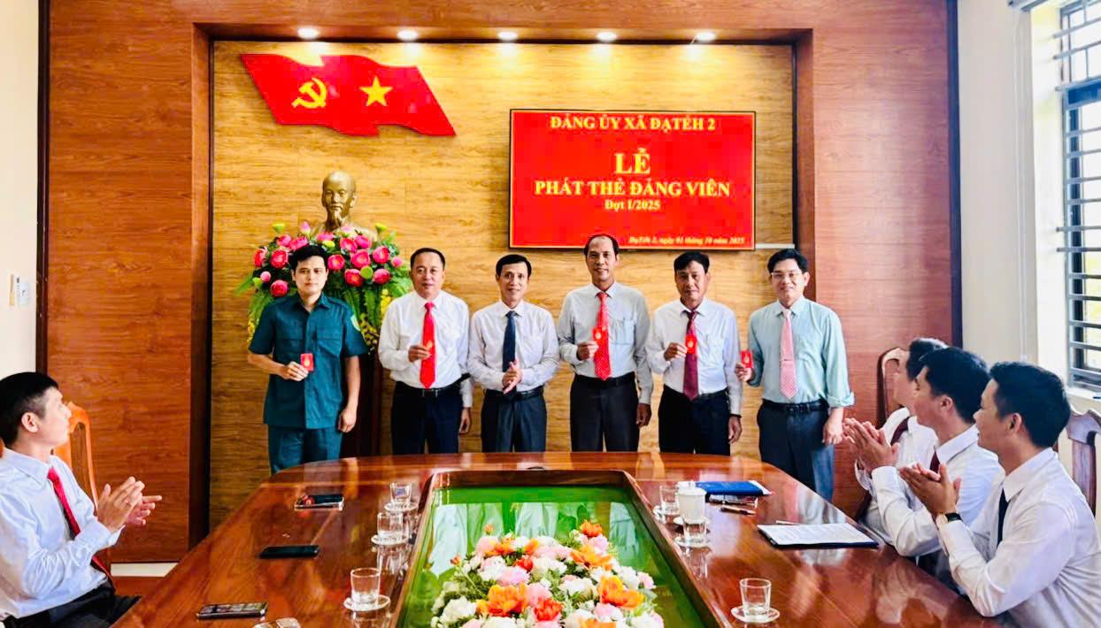 Thực hiện Công văn số 408-CV/BTCTU, ngày 25/9/2025 của Ban Tổ chức Tỉnh ủy Lâm Đồng về việc phát Thẻ đảng viên đợt 1 năm 2025, chiều ngày 01/10/2025, Đảng ủy xã Đạ Tẻh 2 đã tổ chức Lễ phát Thẻ đảng viên đợt 1 năm 2025 cho các đồng chí trong Ban Thường vụ Đảng ủy và đảng viên thuộc Đảng bộ cơ sở Cơ quan UBND xã.
