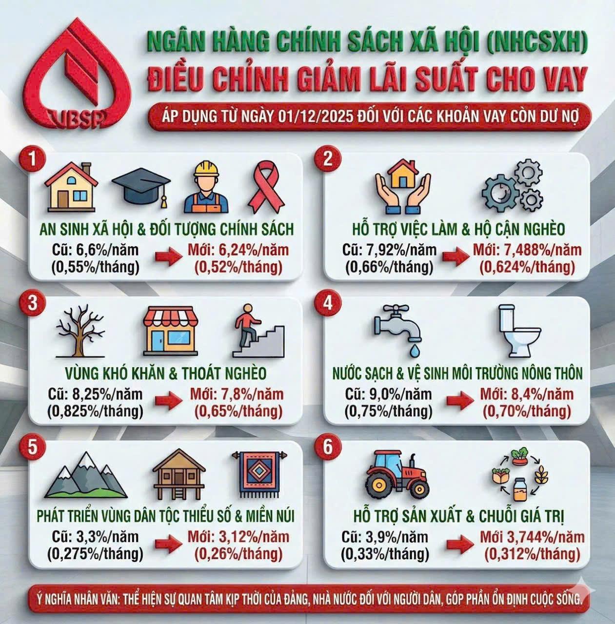 Tín dụng chính sách xã hội Ngân hàng chính sách xã hội điều chỉnh giảm lãi suất cho vay Thứ tư - 03/12/2025 08:47 17 lượt xem Bài trước