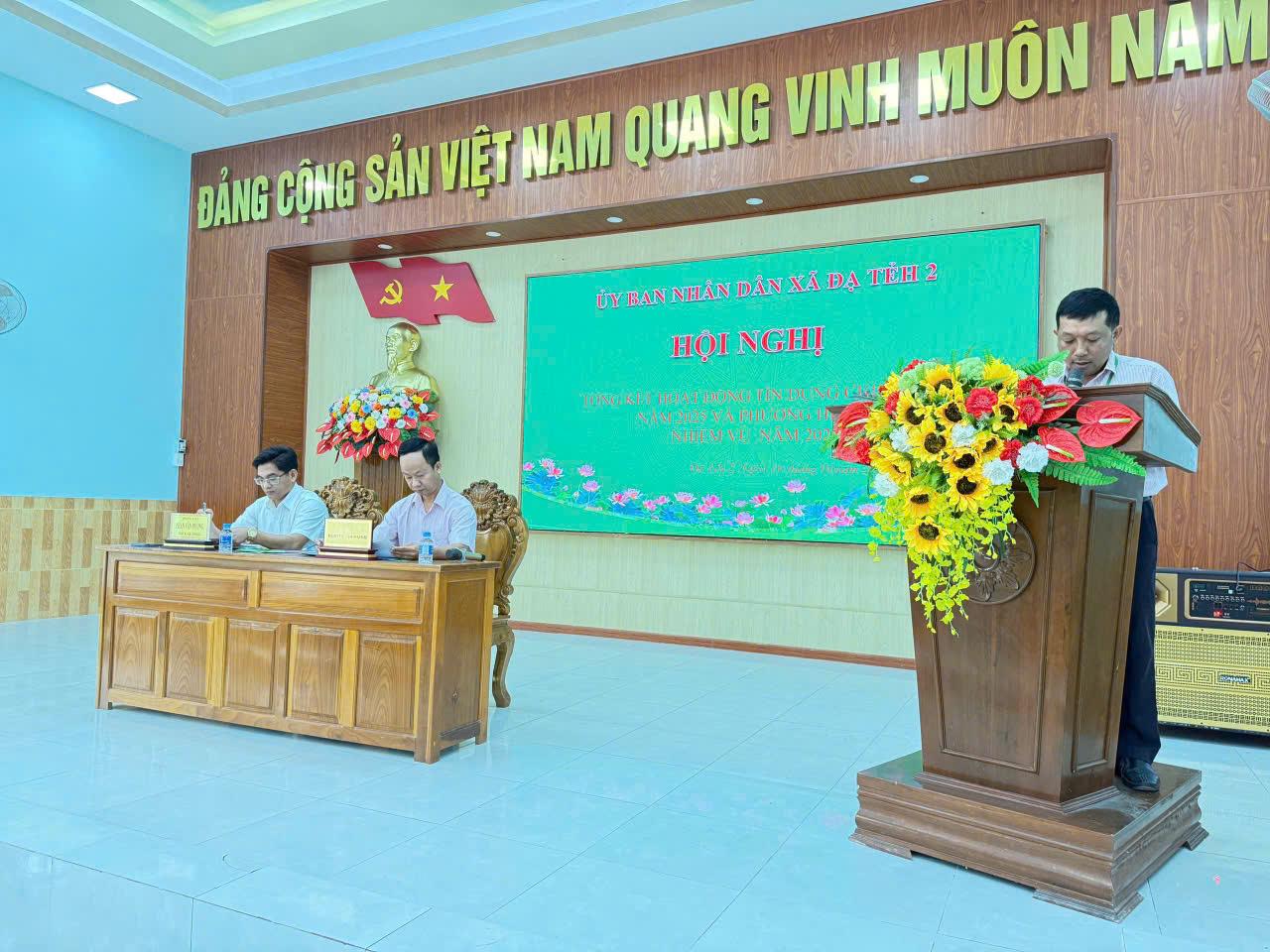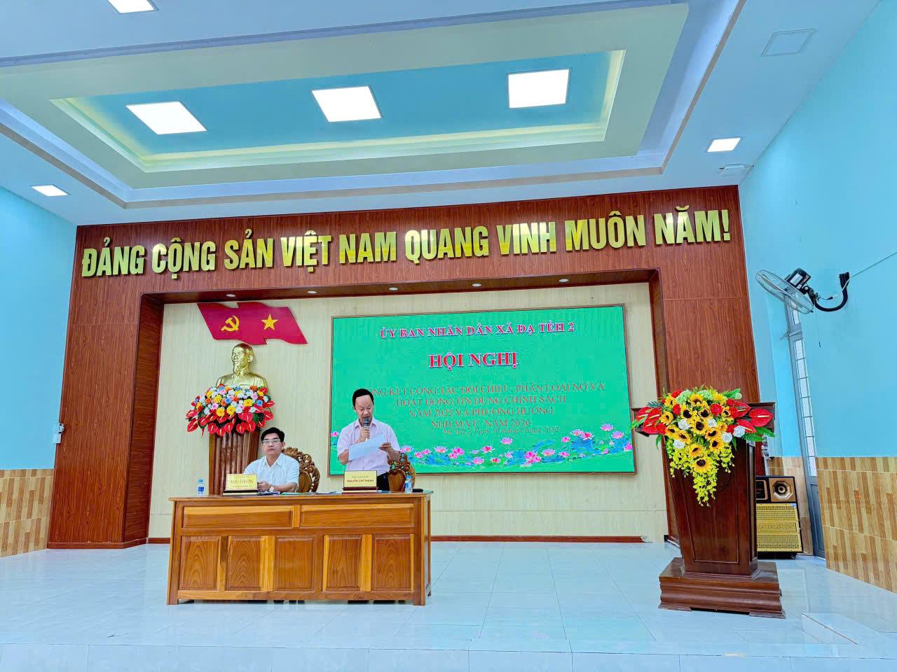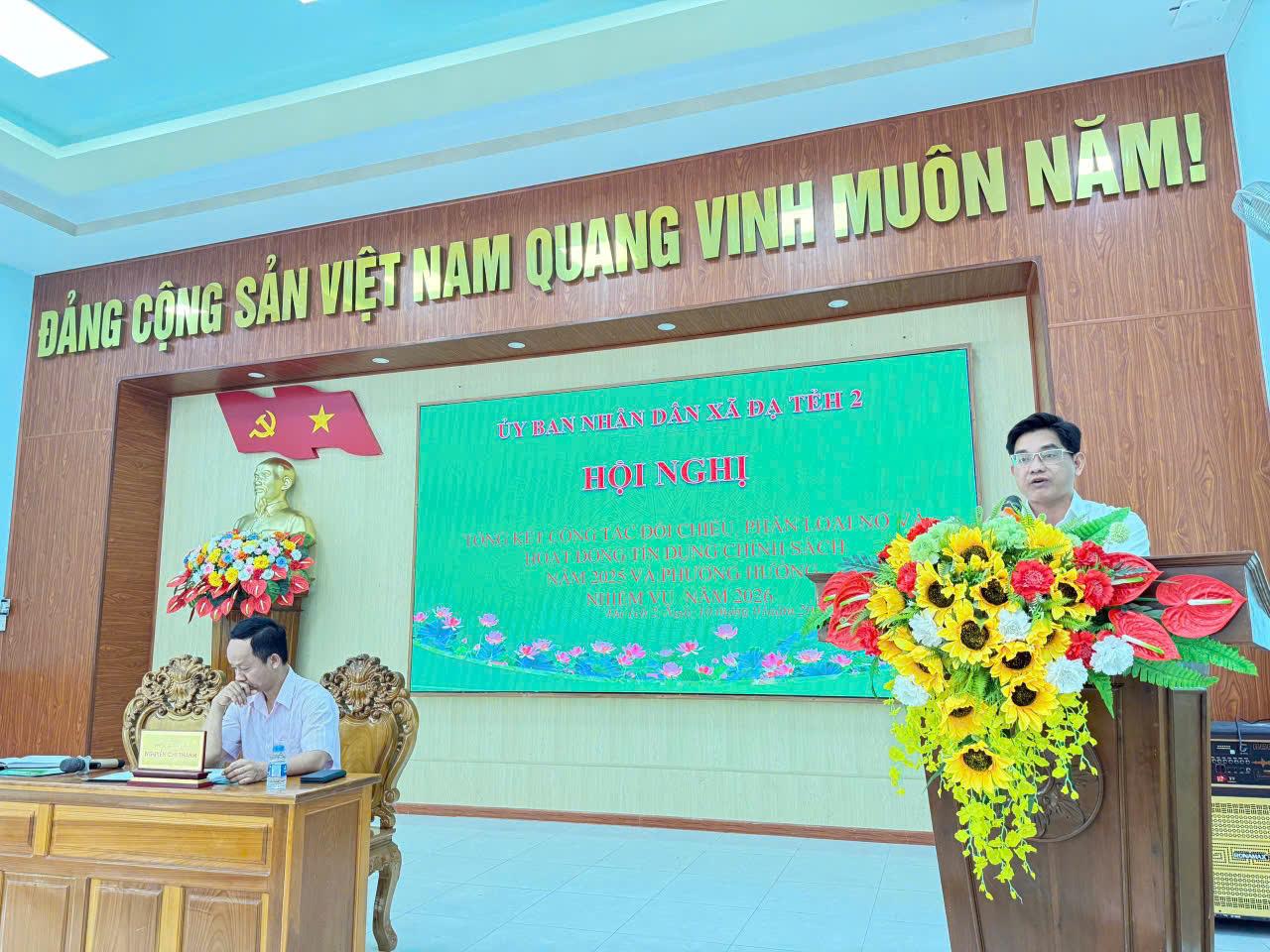 Ngày 10/1/2026, Xã Đạ Tẻh 2 tổ chức Hội nghị Tổng kết công tác đối chiếu phân loại nợ và Hoạt động tín dụng chính sách năm 2025, triển khai nhiệm vụ năm 2026. Đồng chí Phan Văn Đương - Ủy viên Ban thường vụ Đảng ủy xã – Phó Chủ tịch UBND xã Đạ Tẻh 2 chủ trì Hội nghị.